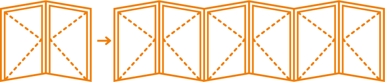 Afhankelijk van de behoefte kunnen deuren met 2 tot 8 vleugels worden uitgevoerd.