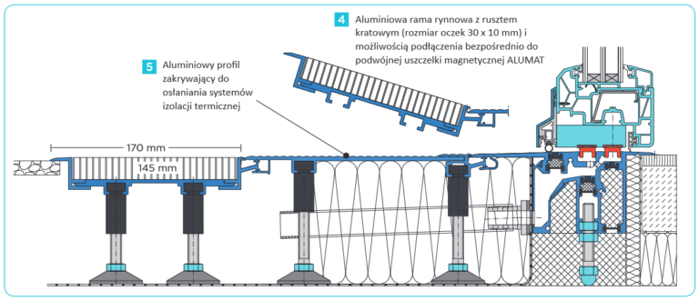 ALUMAT aluminiumdrempels vlak met de vloer +3 mm, met waterafvoer en afdichting aan de onderkant, speciaal ontworpen voor grensloze doorgangen. Verkrijgbaar in de uitvoeringen: MFAT 20/40; MFAT 20/70; MFZ 20; MFHST 20