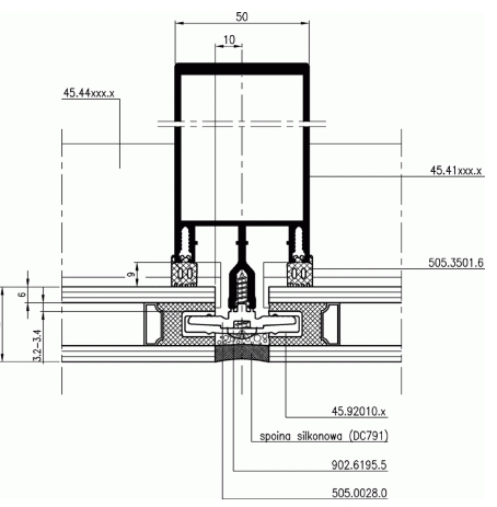 Fasada FA 50 wariant SL – przekrój przez słup fasadowy