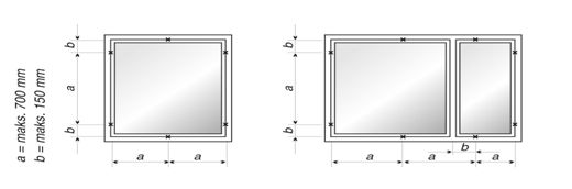 - Voor het bevestigen van ramen moeten spreidankers (Ø10 mm) of montagebeugels worden gebruikt.